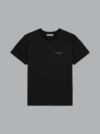 GIVENCHY STAMP T-SHIRT: Subtiele stedelijke verfijningDit zwarte GIVENCHY T-shirt heeft een tijdloos silhouet met een klassieke ronde hals en korte mouwen. Een nauwkeurig weergegeven "GIVENCHY PARIS"-opdruk siert de borst en zorgt voor een iconische signatuur. Het comfortabele, rechte model straalt moeiteloze stedelijke elegantie uit. Dit essentiële item past perfect in een stijlvolle garderobe en biedt veelzijdige stylingmogelijkheden voor zowel overdag als 's avonds in de stad.