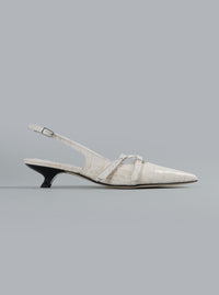 Bumb Love Off White: Sculpturale slingback muiltjes