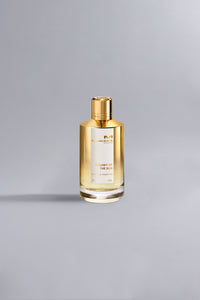 De Melody Of The Sun Gold Eau de Parfum heeft een sculpturale amberkleurige glazen flacon met een verfijnd, zonnig akkoord. Het ontwerp kenmerkt zich door een opvallende goudkleurige dop en een rechthoekig etiket met daarop de precieze opschriften "MANCERA PARIS", "MELODY OF THE SUN" en "EAU DE PARFUM". Deze compositie, een mix van citrus, peer, lavendel en jasmijn, straalt een verfijnde, stralende aanwezigheid uit, ideaal voor een chique stedelijke omgeving of een luxueuze avondlook.