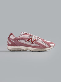 De U204L7AM presenteert een tijdloos hardloopsilhouet, uitgevoerd in een hoogwaardige, gelaagde constructie. Het bovenwerk heeft een dynamische combinatie van technische mesh-ventilatiepanelen en zorgvuldig gestructureerde suède overlays in een opvallende mauve tint. Sculpturale witte details omlijsten de structuur, terwijl het iconische dieprode N-logo de herkenbare erfgoedidentiteit benadrukt. De duurzame rubberen buitenzool is ontworpen voor optimaal comfort en biedt een stevige basis voor een dynamische, stijlvolle look in de stad.